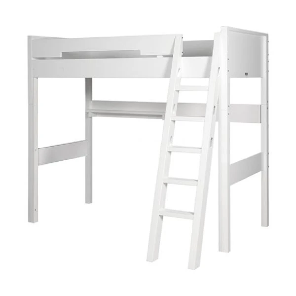 De Combiflex Hoogslaper XL beschikt over een schuine trap. Deze trap kan zowel aan de linkerzijde als aan de rechterzijde geplaatst worden. De uitsparingen aan de zijkant van de trap zijn handig om aan vast te pakken zodat je kind niet gauw van de ladder valt. Hoogslaper XL is hoger dan de standaard hoogslaper en beschikt dus ook over een hogere trap. De hoogslaper wordt geleverd met plastic afdekdopjes om de zichtbare schroeven te verbergen. Onder het bed kan eventueel een klein kastje neergezet worden.