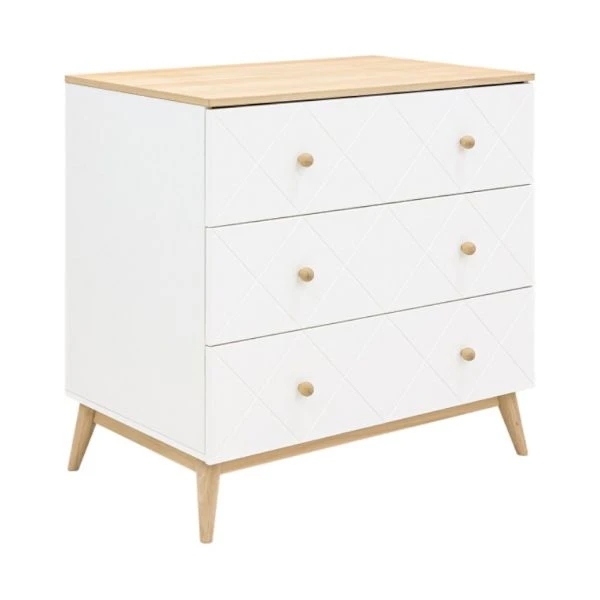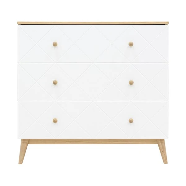 De Bopita Paris Commode Wit / Eiken kenmerkt zich door de zichtbare diagonale groeven en eiken accenten. Door de neutrale kleuren en vormen is deze commode geschikt voor zowel jongens als meiden. Daarnaast beschikt deze commode over 3 ruime lades en bieden daardoor voldoende opbergruimte. Verder is de commode leuk te combineren met andere meubels uit de Bopita Paris serie. Gemaakt van hoogwaardig MDF en eiken materiaal.