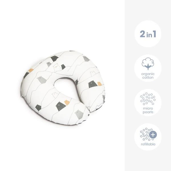 De Doomoo Softy Bear Voedingskussen Grey geeft niet alleen ondersteuning bij het geven van borst- en flesvoeding, ook zal je kindje veel plezier hebben van dit voedingskussen! Je kan het voedingskussen eenvoudig om je taille heen doen wanneer je je kindje moet voeden en vormen naar jouw wensen dankzij de vulling met microvezels. Door het voedingskussen neer te leggen met de uiteinden tegen elkaar, kan je kindje comfortabel liggen. Verder is het kussen gemaakt van hoogwaardig materiaal en voelt comfortabel aan.