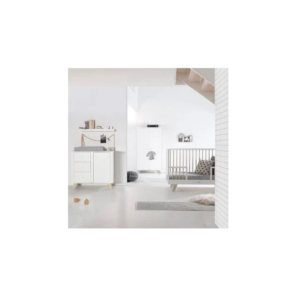 Zoek je een stijlvolle babykamer, net even wat anders dan anders? Dan is de Kidsmill Lars Babykamer misschien wel iets voor jou! De meubels hebben een speelse, eigenwijze look dankzij de blanken pootjes en de ronde handgrepen. De meubels zijn gemaakt van MDF en de spijlen van massief beuken. Welke kleur is jouw favoriet voor de pootjes van de meubels van de Babykamer Lars? Je kunt kiezen uit zwart, wit of naturel.
