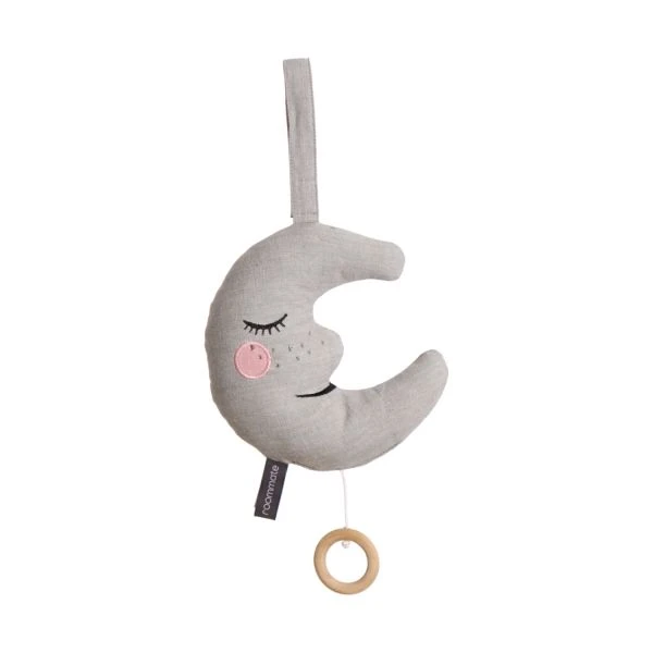Met deze vrolijke Roommate Moon Muziekmobiel zal je kindje heerlijk in slaap vallen. Wanneer je aan het koordje trekt hoor je een rustgevend muziekje. De muziekmobiel staat ook nog eens erg leuk op de baby- of kinderkamer! Hang de muziekmobiel eenvoudig op aan bijvoorbeeld de wieg, ledikant of kast. De muziekmobiel is gemaakt van hoogwaardig materiaal en kan niet gewassen worden in de wasmachine.