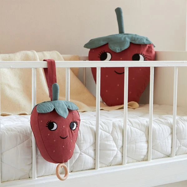 Met de Roommate Strawberry Muziekmobiel zal je kindje heerlijk in slaap vallen. Wanneer je aan het koordje trekt hoor je een rustgevend muziekje. De muziekmobiel staat ook nog eens erg leuk op de baby- of kinderkamer! Hang de muziekmobiel eenvoudig op aan bijvoorbeeld de wieg, ledikant of kast. De muziekmobiel is gemaakt van hoogwaardig materiaal en kan niet gewassen worden in de wasmachine.