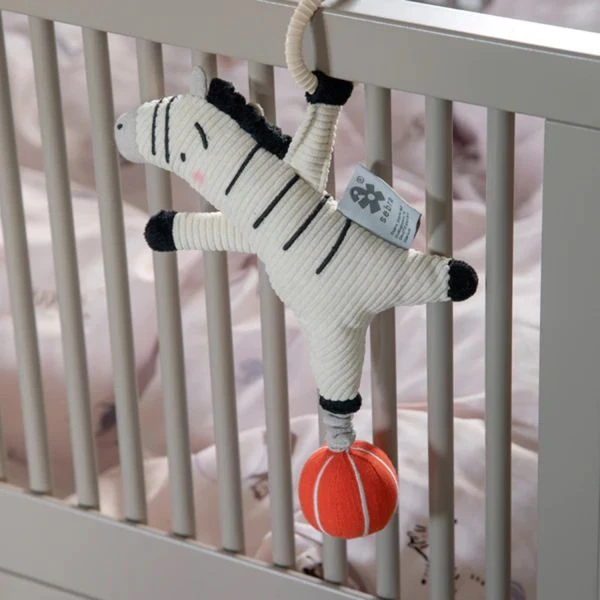 Met de Sebra Zebra Muziekmobiel is je kindje nog sneller in dromenland. De muziekmobiel is gemaakt van hoogwaardig materiaal dat zacht en comfortabel aanvoelt. De schattige zebra is voorzien van een rustgevend muziekje, zo blijft je kindje heerlijk rustig liggen. De muziekdoos is eenvoudig te bevestigen aan de wieg, box of ledikant met behulp van een ring.